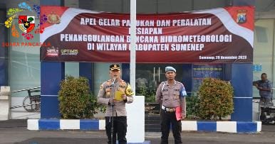 Kegiatan apel gelar pasukan dan peralatan dilaksanakan sebagai bentuk kesiapan Polres Sumenep dalam menghadapi potensi bencana alam hidrometeorologi.