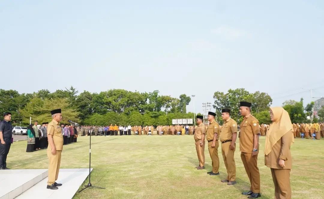 DISKOMINFO MURA (SUMSEL), SUARAPANCASILA.ID – Wakil Bupati Musi Rawas H Suprayitno @h.suprayitno01 pimpin Apel Pagi Bersama dan Penyerahan Bingkisan Bagi Pegawai Negeri Sipil yang Memasuki Purna Tugas TMT 1 Oktober 2025 di Lingkungan Pemerintah Kabupaten Musi Rawas, bertempat di Halaman Kantor Bupati Kabupaten Musi Rawas, Senin (6/10/2025).