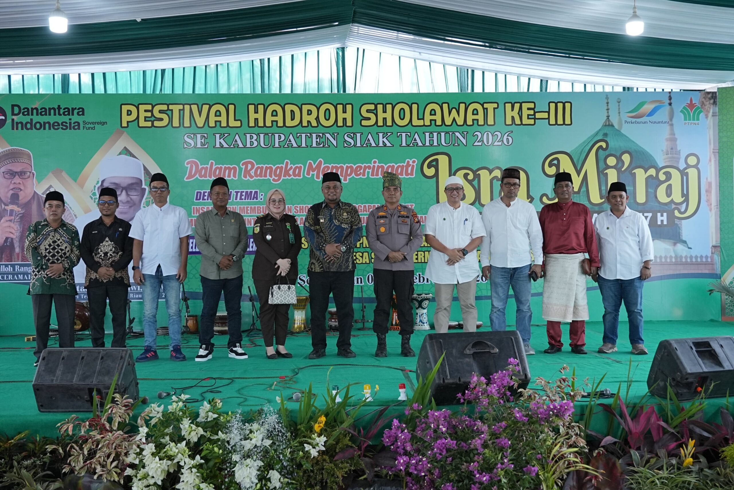 DAYUN (RIAU), SUARAPANCASILA.ID – Festival Hadroh Sholawat III se Kabupaten Siak Tahun 2026 dalam rangka memperingati Isra’ Mi’raj Nabi Muhammad SAW 1447 Hijriah resmi dibuka Wakil Bupati Siak Syamsurizal di PTPN IV Regional III Kebun/PKS dan Plasma Sei Buatan, Desa Sawit Permai, Kecamatan Dayun, Kabupaten Siak, Kamis (5/2/2026).