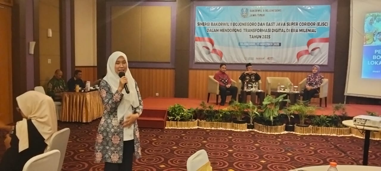 KAB BOJONEGORO (JATIM) SUARAPANCASILA.ID – Upaya mendorong produk lokal menembus pasar dunia kembali digaungkan Bakorwil Bojonegoro Jawa Timur melalui gelaran Workshop“ Sinergi Bakorwil Bojonegoro dan East Java Super Coridor ( EJSC) Dalam Mendorong Transformasi Digital di Era Melenial Tahun 2025″, di Hotel Aston, Minggu (25/11/2025).
