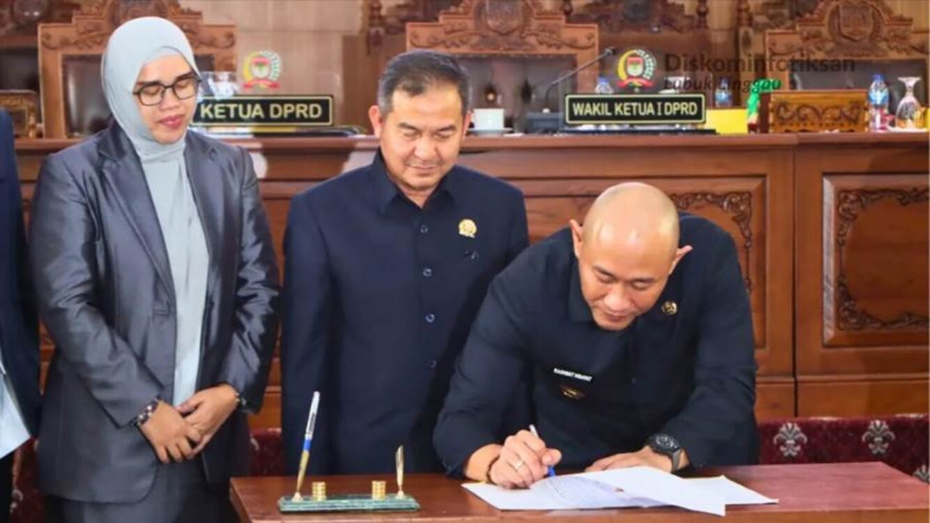 LUBUK LINGGAU (SUMSEL), SUARAPANCASILA.ID -Wali Kota Lubuk Linggau, H Rachmat Hidayat menghadiri Rapat Paripurna DPRD Kota Lubuk Linggau dalam rangka penetapan Program Pembentukan Peraturan Daerah (Propemperda) Kota Lubuk Linggau Tahun 2026, dilanjutkan dengan penandatanganan persetujuan bersama antara Wali Kota dan DPRD Kota Lubuk Linggau, Senin (26/1/2026).