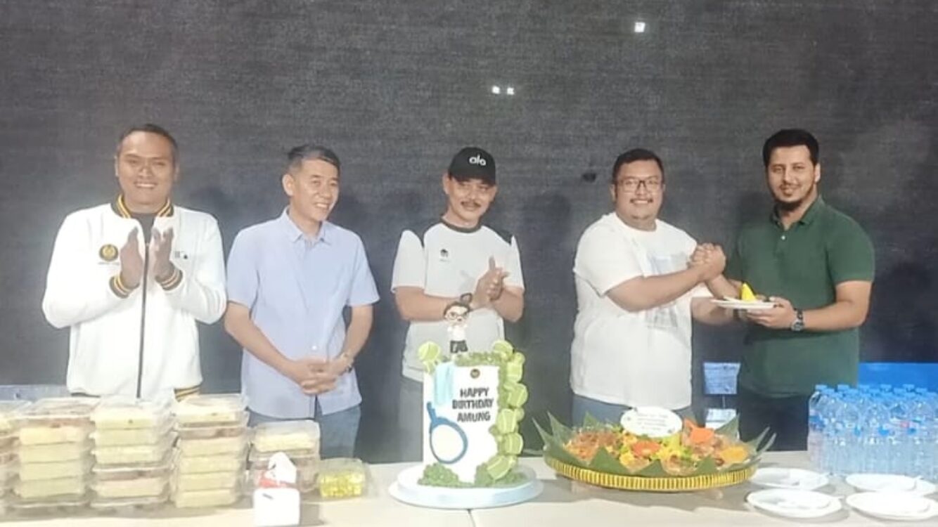 Sebelum prosesi pemotongan tumpeng, Amung mendapat kejutan ulang tahun dari pengurus dan member Rebellion Club, bahkan ia juga disiram air oleh Wali Kota Wahyu Hidayat sebagai bentuk keakraban.