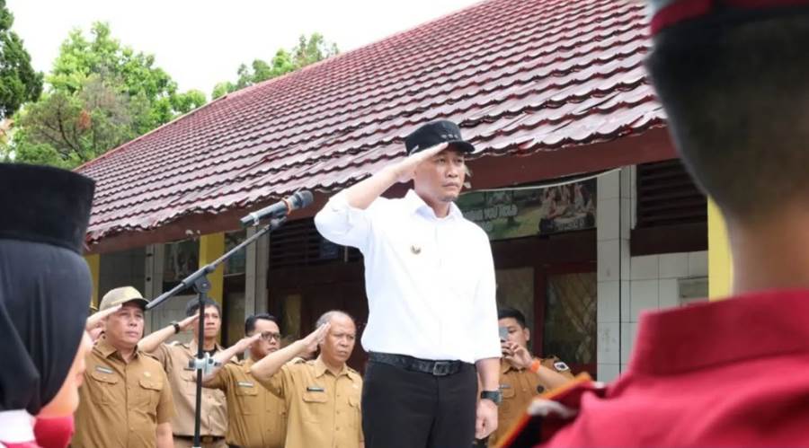 LUBUK LINGGAU (SUMSEL), SUARAPANCASILA.ID -Wali Kota Lubuk Linggau, H Rachmat Hidayat, bertindak sebagai pembina upacara bendera di SMA Negeri 1 Lubuk Linggau, Senin (20/10/2025).