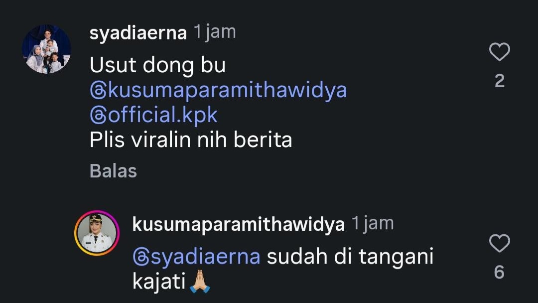 Menanggapi komentar itu, Bupati Brebes Paramitha Widya Kusuma melalui akun @kusumaparamithawidya menyampaikan bahwa persoalan tersebut telah ditangani oleh Kejaksaan Tinggi Jawa Tengah.