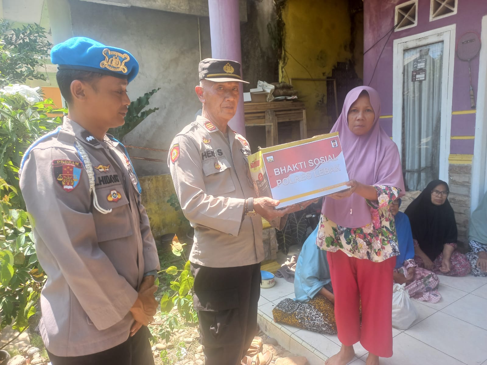 Bakti sosial yang dilakukan oleh Kapolres Lebak melalui PLH Kapolsek Panggarangan AKP HERI SUPRIADI, di dampingi oleh Aipda LUBIS HIDAYAT, dan Bripka TOPIK HIDAYAT yang diterima langsung oleh ibu-ibu warga masyarakat Kampung Cisiih yang kurang mampu.