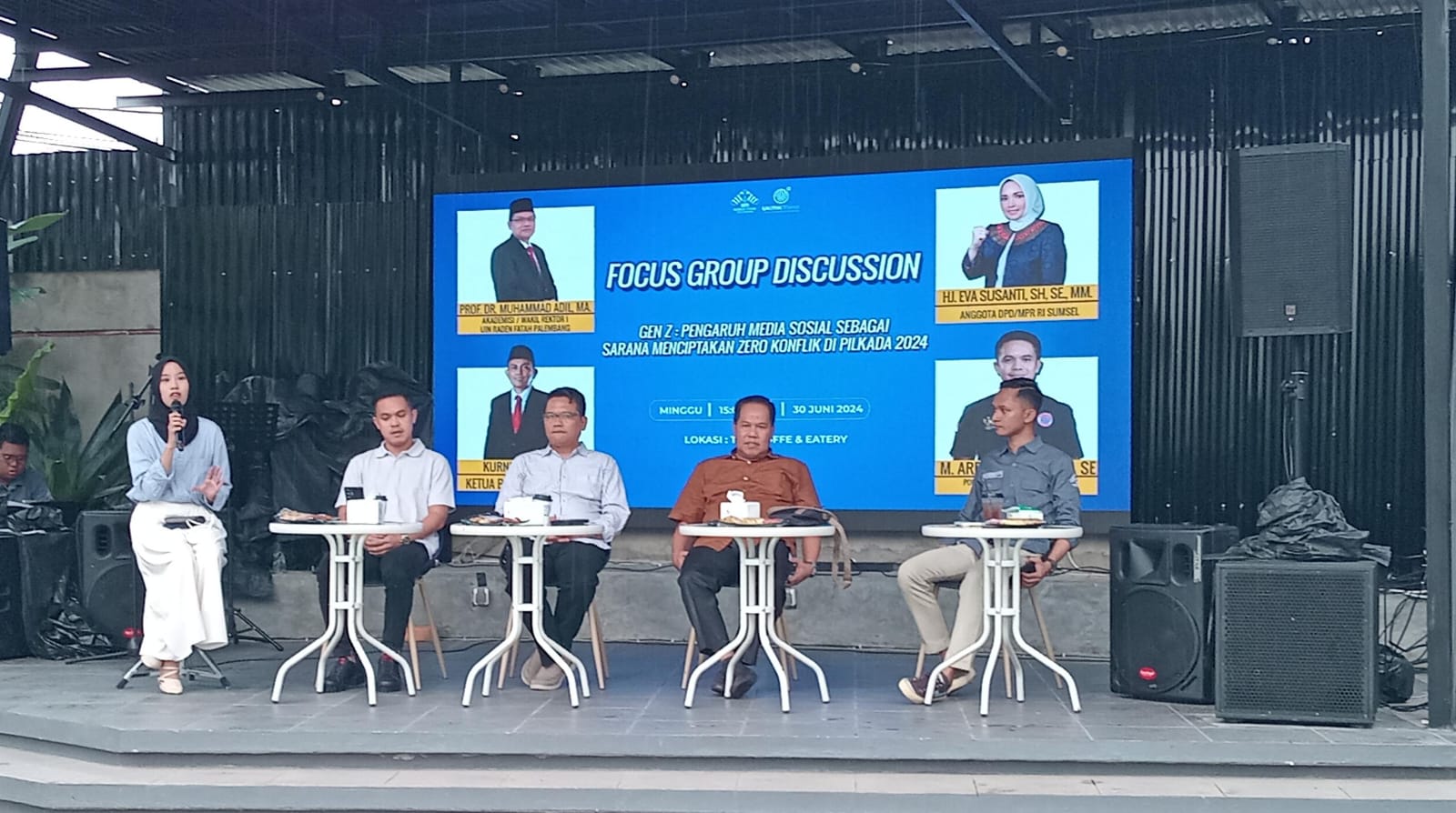 PALEMBANG,SUARAPANCASILA.ID – UKMK Mirror UIN Raden Fatah Palembang menggelar Fokus Group Discussion (FGD) dengan Tema Gen Z Pengaruh Media Sosial Sebagai Sarana Menciptakan Zero Konflik di Pilkada 2024, acara tersebut dihadiri mahasiswa dari beberapa Universitas Negeri dan Swasta di Kota Palembang yang bertempat di Taki Coffe & Eatri Palembang, Minggu (30/06/24).